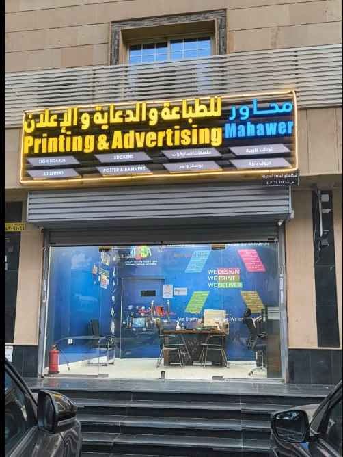 في محاور للطباعة والدعاية والإعلان نهدف إلى مساعدة الأنشطة التجارية على التميز من خلال خدمات إعلانية متكاملة تشمل التصميم الاحترافي، الطباعة عالية الجودة، ولوحات الإعلانات الجذابة. نسعى لزيادة ظهور العلامة التجارية وجذب الانتباه ونقل الرسالة بشكل واضح ومؤثر. كل مطبوعة أو إعلان أو لوحة دعائية نقدمها هي وسيلة فعّالة نحو نمو مستدام ونجاح ملموس.